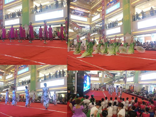 上半場的旗袍秀于12點正式結(jié)束,午休期間,旗袍表演者換上各式各樣新的旗袍,在后臺抓緊時間練習(xí),為下午場做準(zhǔn)備。下午場于14:30正式開始。